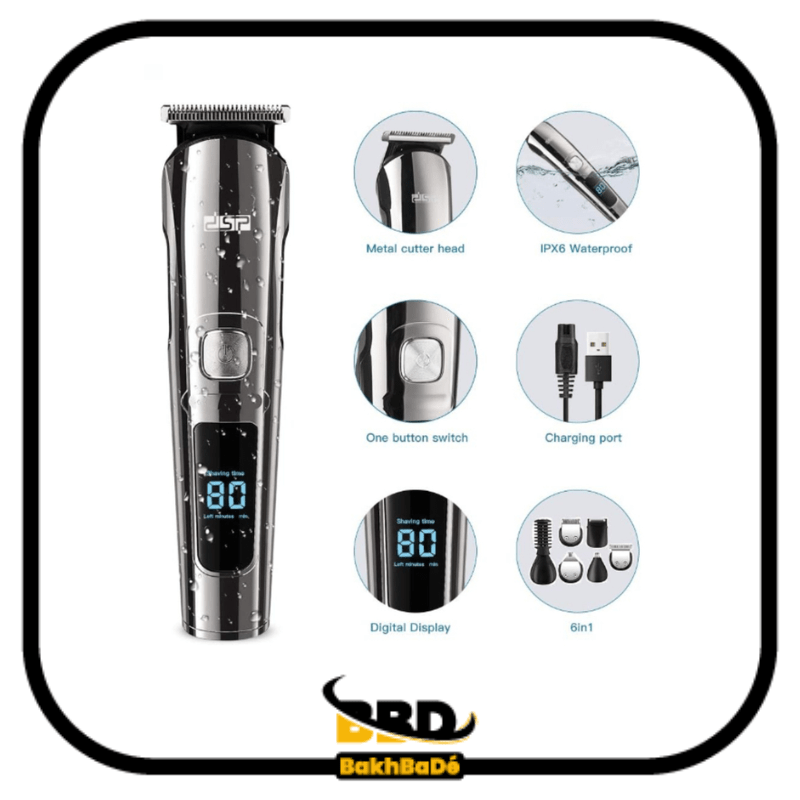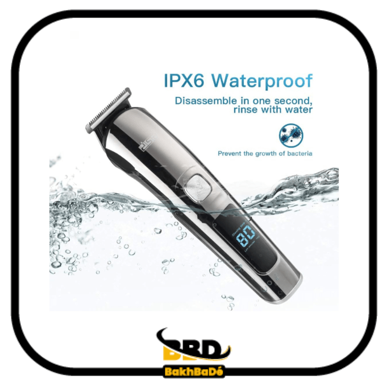 Kit d’accessoires : boîte de rangement, couteau en T, couteau en U, tondeuse, rasoir, couteau à lettres, couteau pour les poils du corps, brosse de nettoyage, bouteille d’huile, adaptateur (ou équipé d’un câble USB), peigne de limitation (3/6 /9/12MM